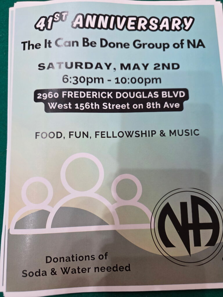 Food, fun, fellowship and music. Donations of soda and water needed.