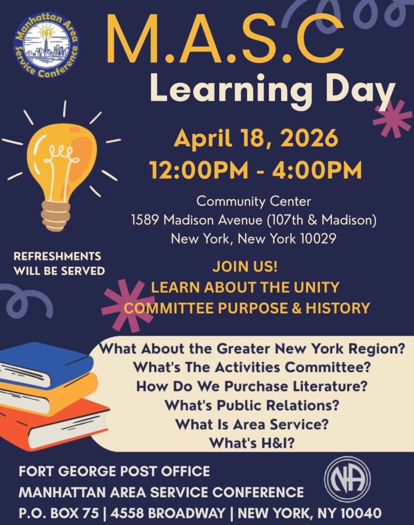 Join us for the Manhattan Area of Narcotics Anonymous learning day!